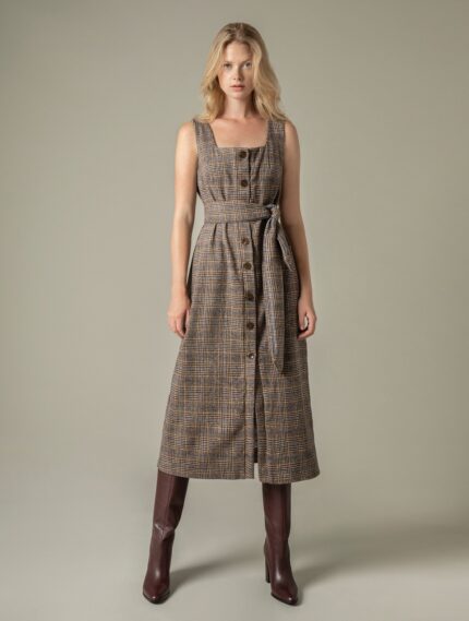 Φόρεμα καρώ με τιράντες και κουμπιά