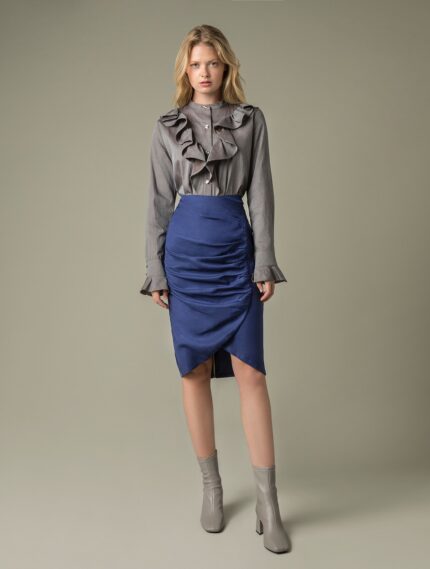 Παλτό Μπλέ με σχέδια μαύρα – αποσπώμενη κουκούλα