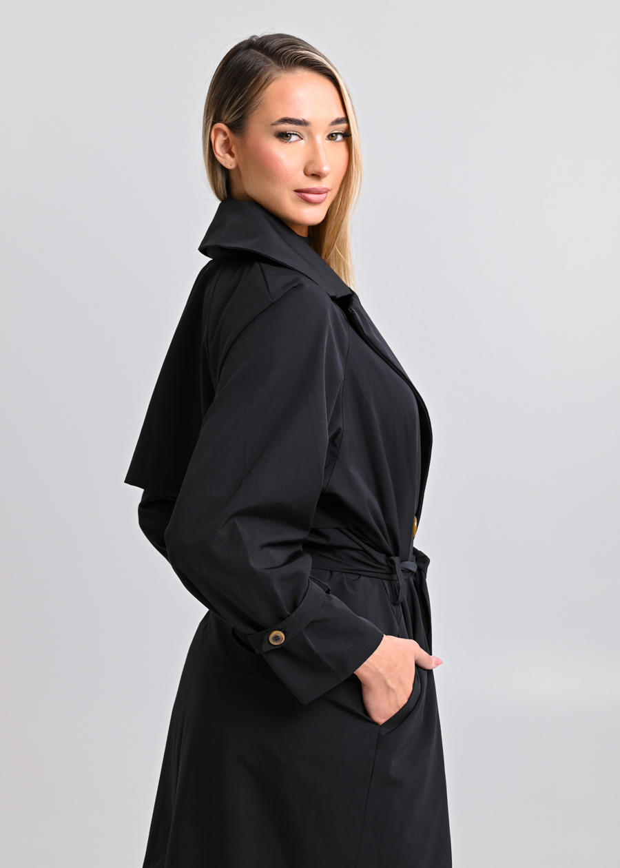 Long loose fit trench coat in an oversized silhouette, featuring a back flap detail.