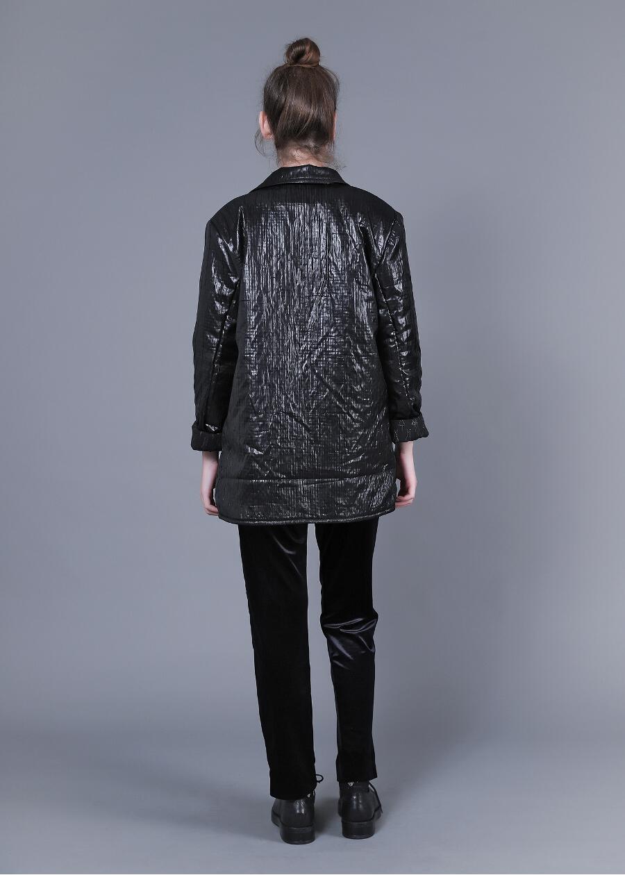 Blazer Δερματίνη με εσωτερική επένδυση μπροκάρ (το σχέδιο της επένδυσης είναι αστέρια από μεταλλική κλωστή). Κουμπιά με βελούδο. Τσέπες στο μπροστινό μέρος. Loose Fit.