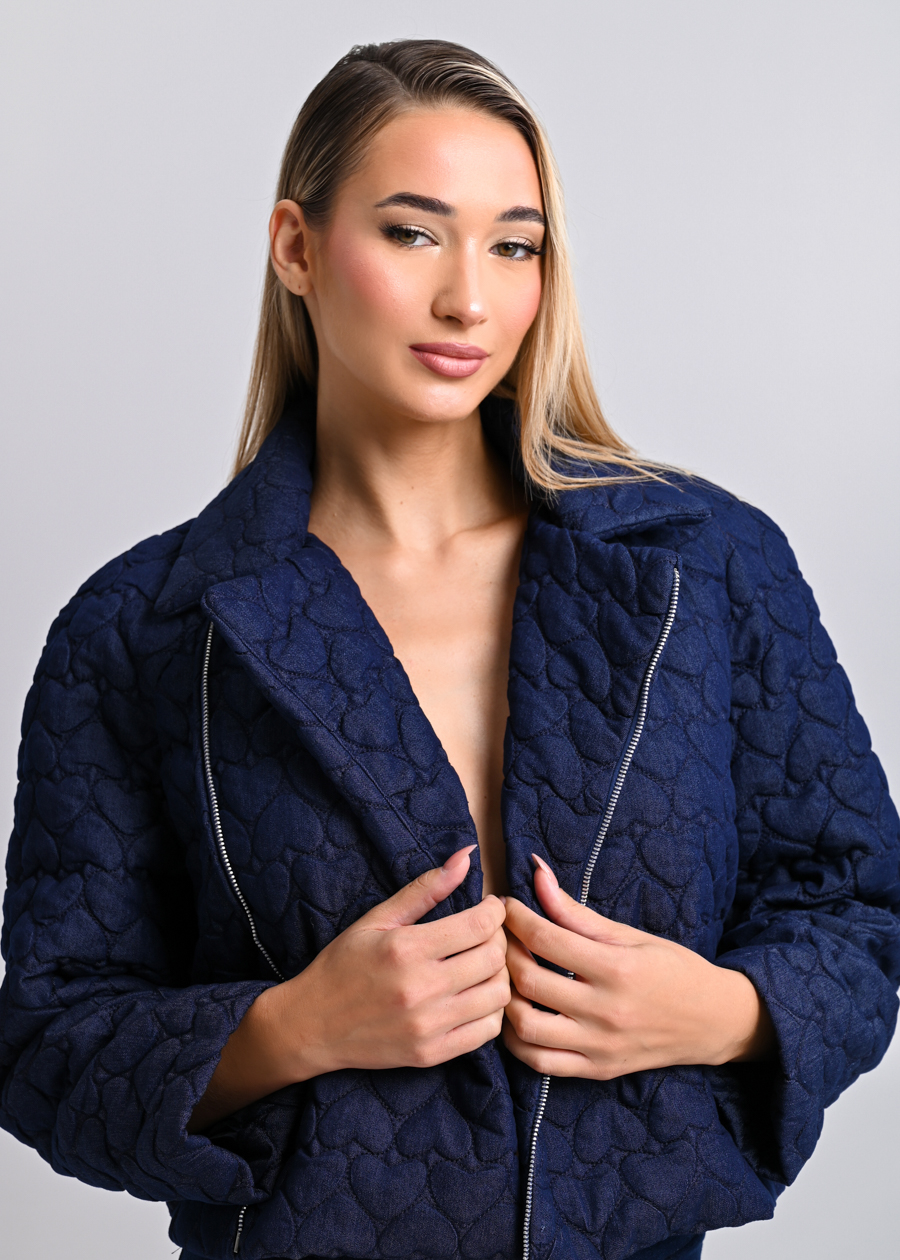 Denim Heart Perfecto jacket. Oversized and loose fitting.