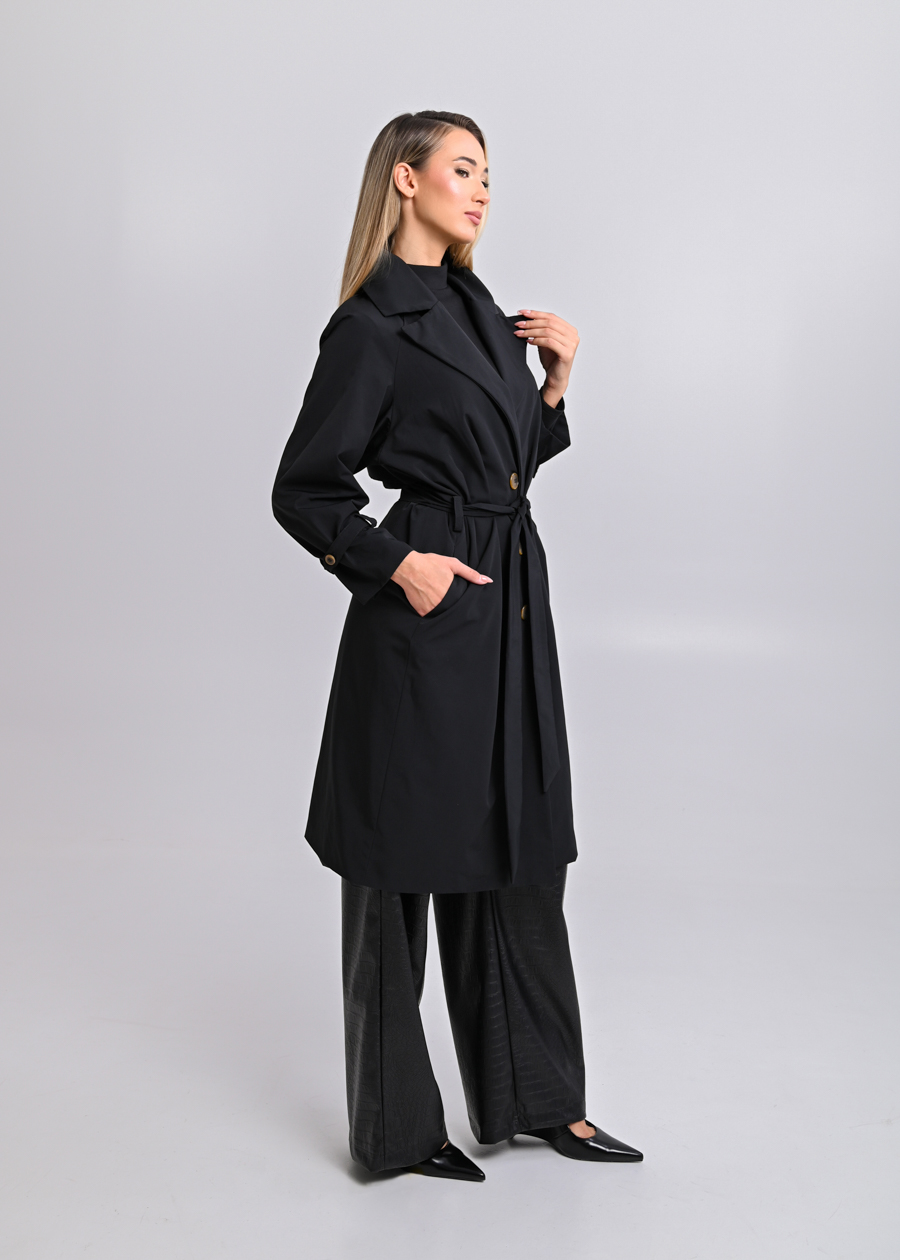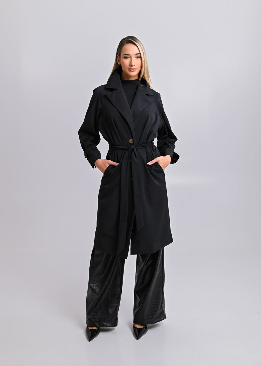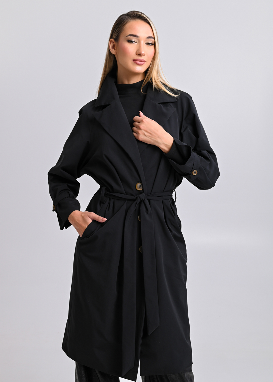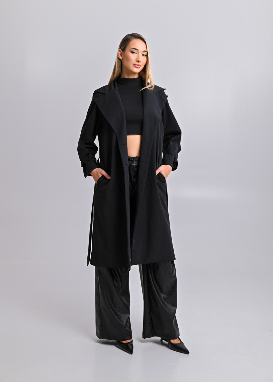Μακριά loose-fit καπαρντίνα σε oversize γραμμή με φλάπ στο πίσω μέρος.