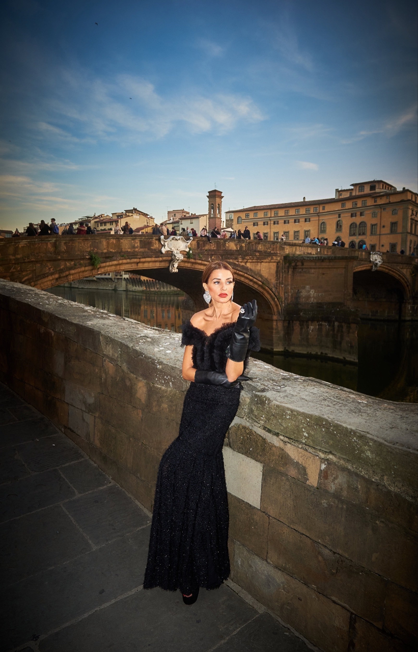 Μακριά Maxi φούστα, ψηλόμεση με πιέτες και σχήσιμο, το οποίο ξεκινά λίγο πάνω από το γόνατο. Κλείνει με φερμουάρ στο πίσω μέρος.