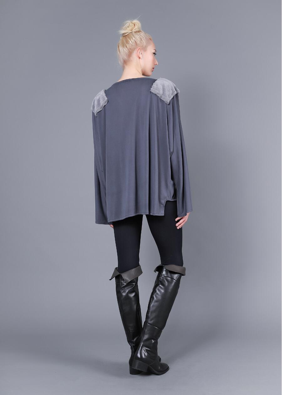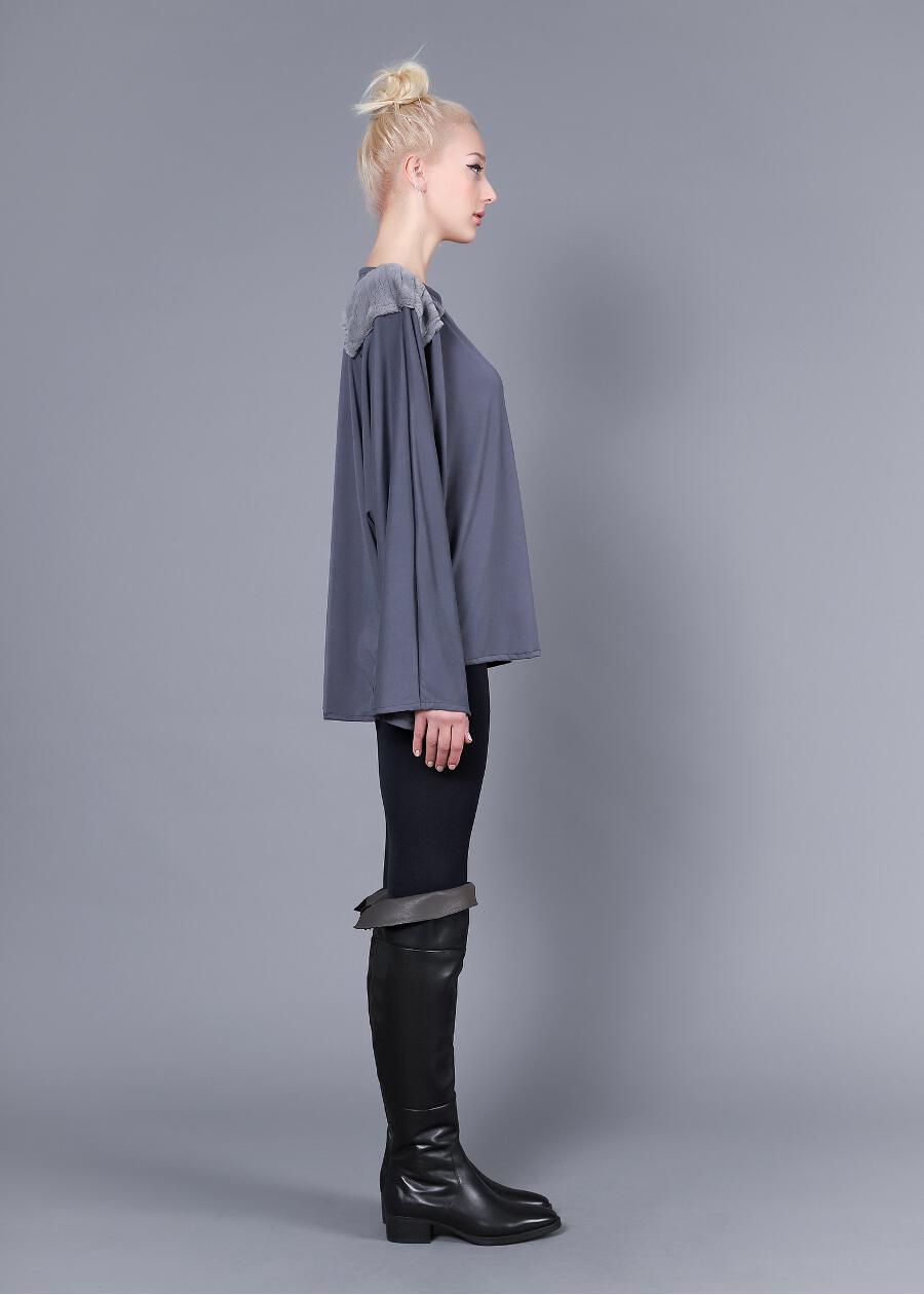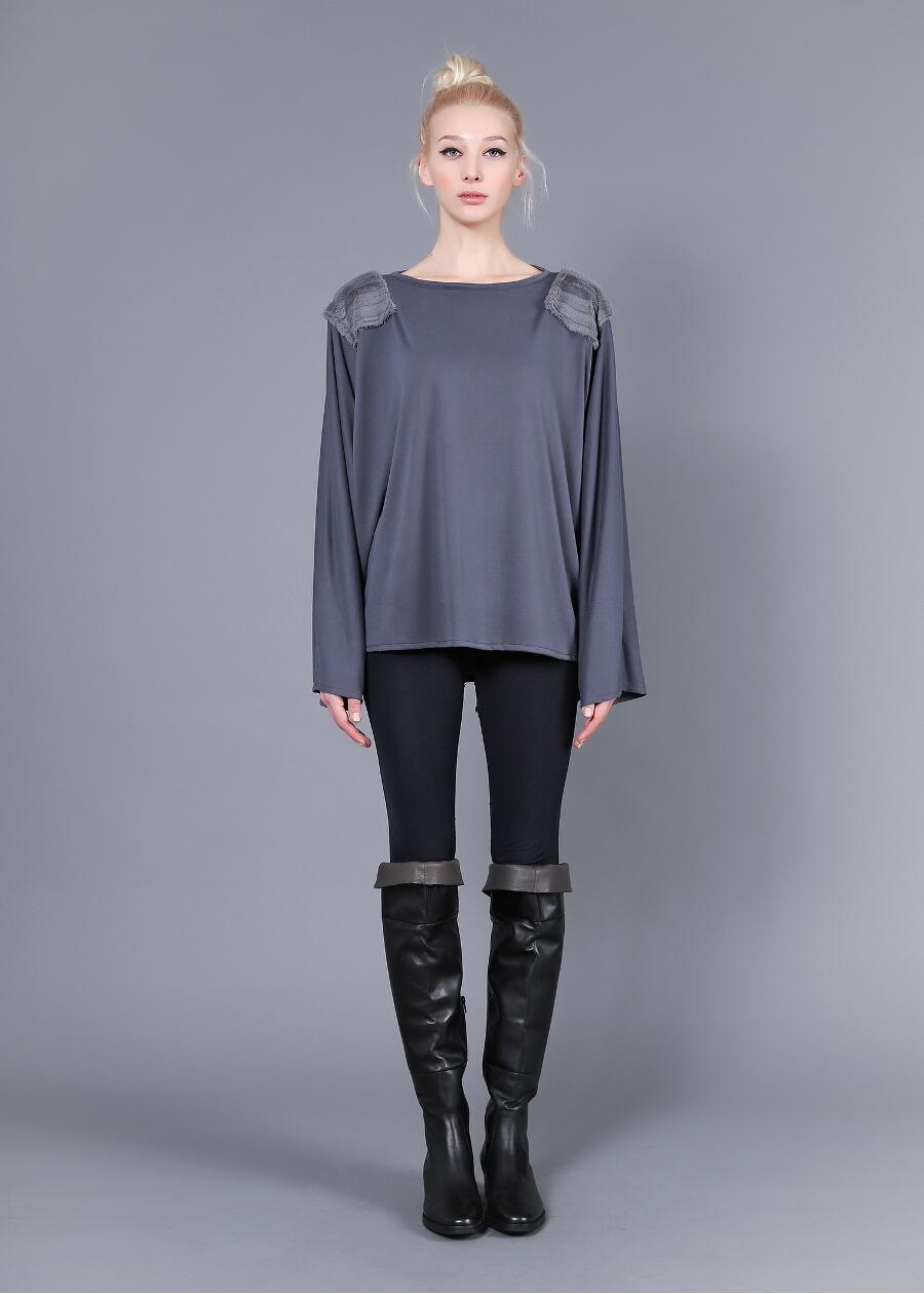 Loose μπλούζα με επωμίδες από γούνα