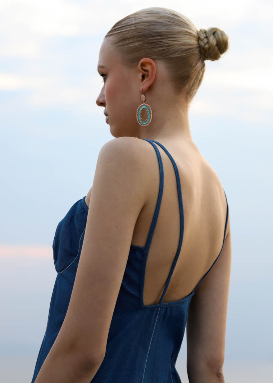 To μπούστο σχηματίζεται από cups. Υπάρχουν τιράντες που συνδέουν το μπούστο με την πλάτη.