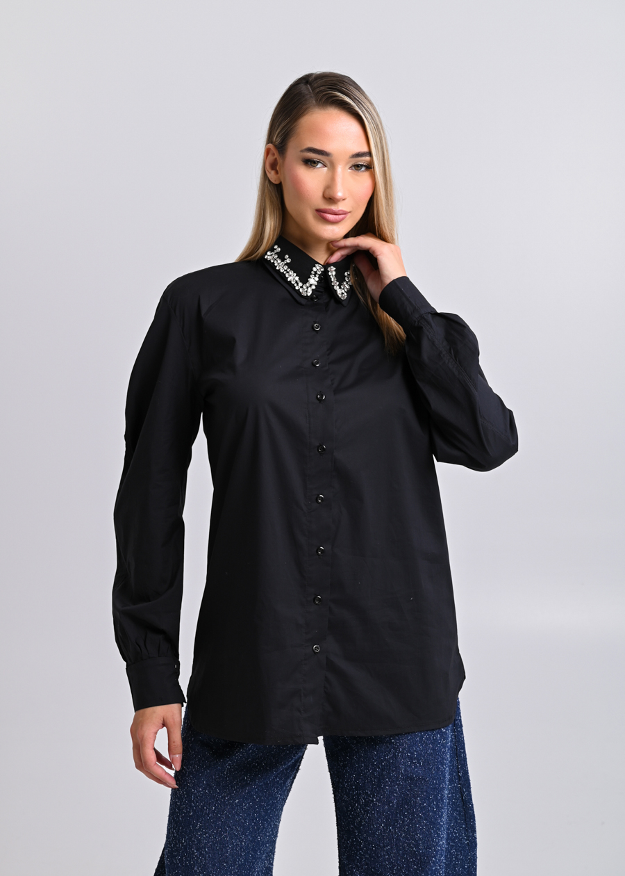 Πουκάμισο σε ελεύθερη γραμμή με ελαφρώς over μανίκι με μανσέτες.