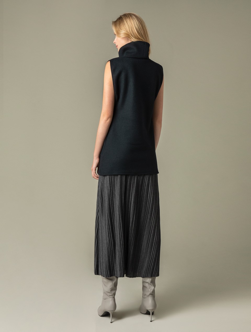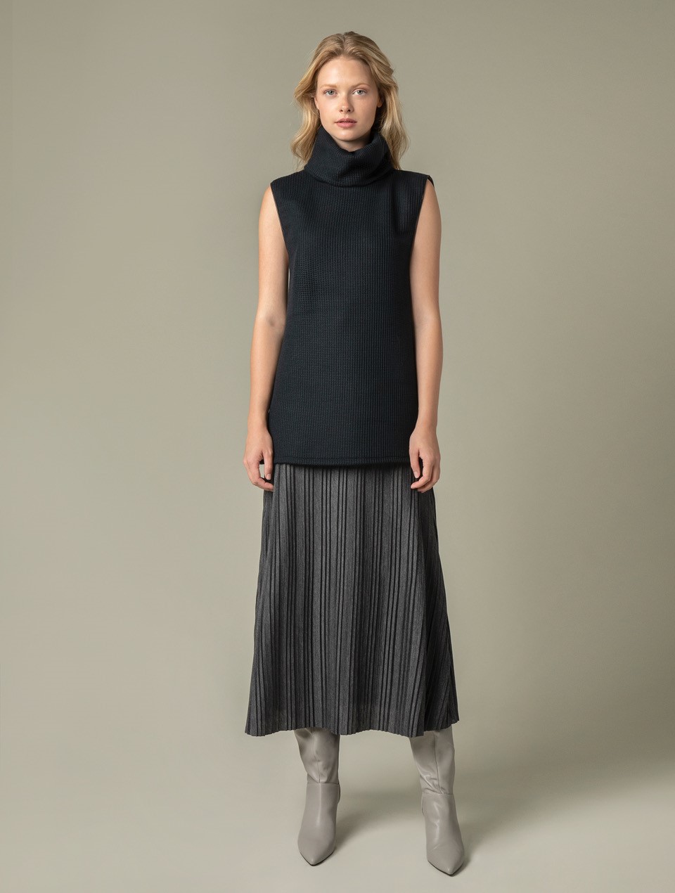Πλεκτή καζάκα με loose ζιβάγκο και φυτίλι από δερματίνη περιφερειακά της μασχάλης και κατά μήκος τοιυ ώμου