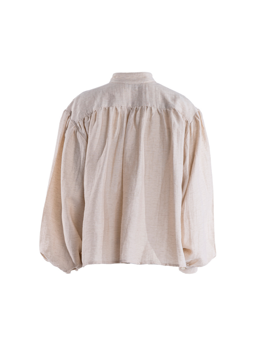 Μακρυμάνικη πουκαμίσα σε ανοιχτό μπεζ χρώμα με ρομαντικό ύφος.