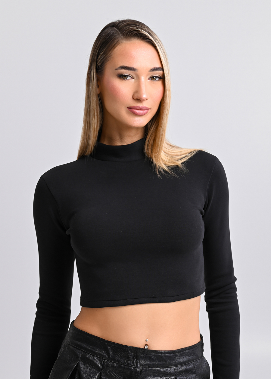 Crop Top με mao λαιμό και μανίκι γάντι.