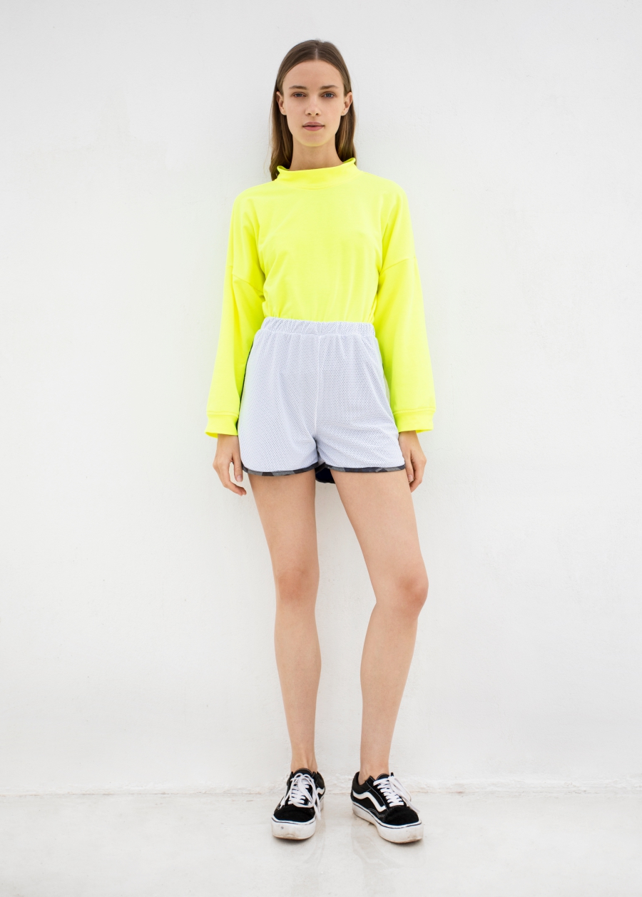 Αθλητικό σορτσάκι δίχτυ με επένδυση από βισκοζολύκρα και ρέλι με σχέδιο τύπου στρατιωτικού τζην. Λάστιχο στη μέση.