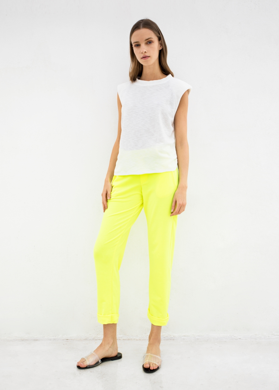 Top λευκό με βάτες και κορδόνια στο πλάι,ώστε να ρυθμίζεται το επιθυμητό μήκος κάθε φορά.